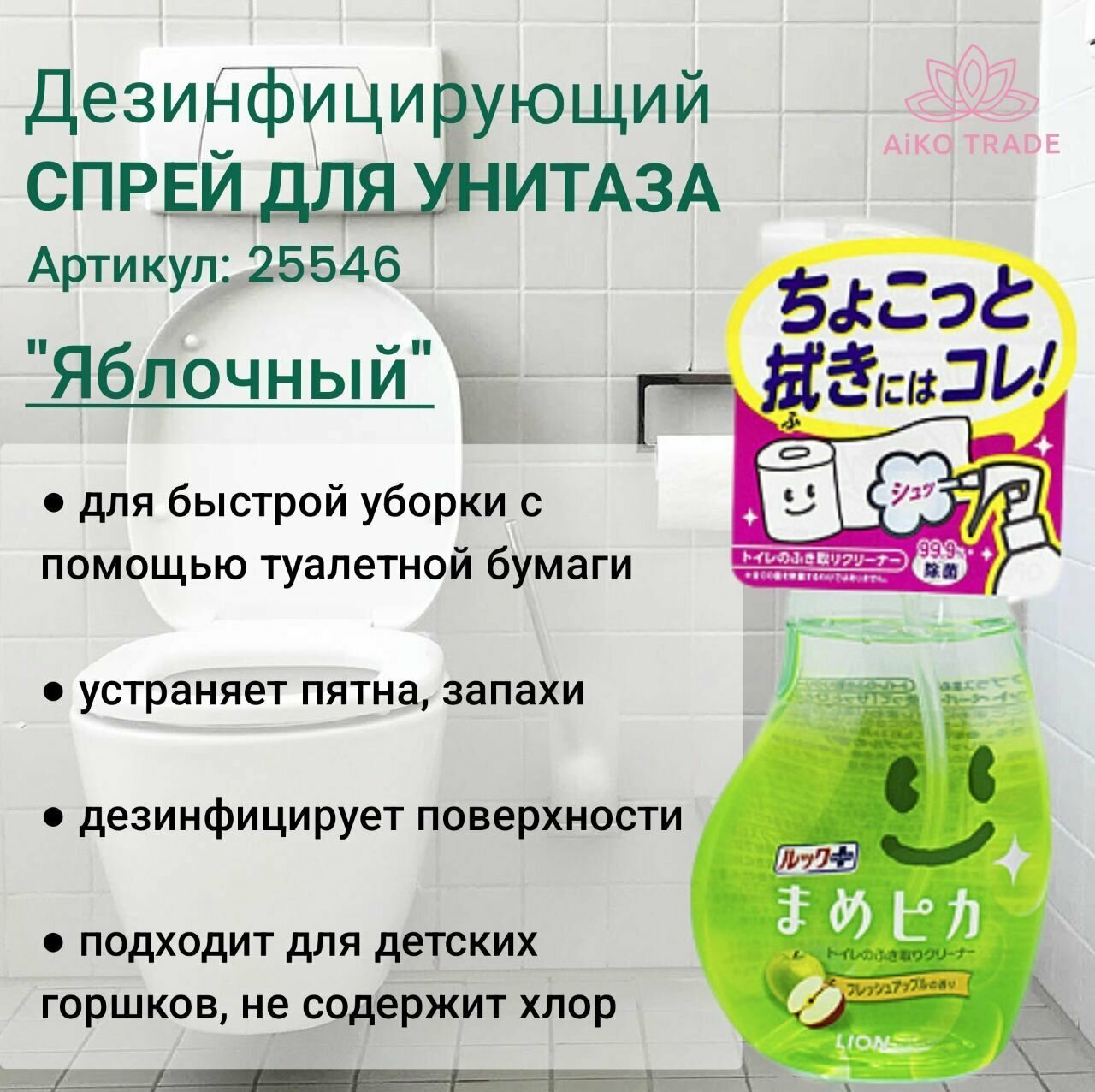 LION Чистящий и дезинфицирующий спрей для унитаза (Яблочный) пульверизатор 210 мл интересное: