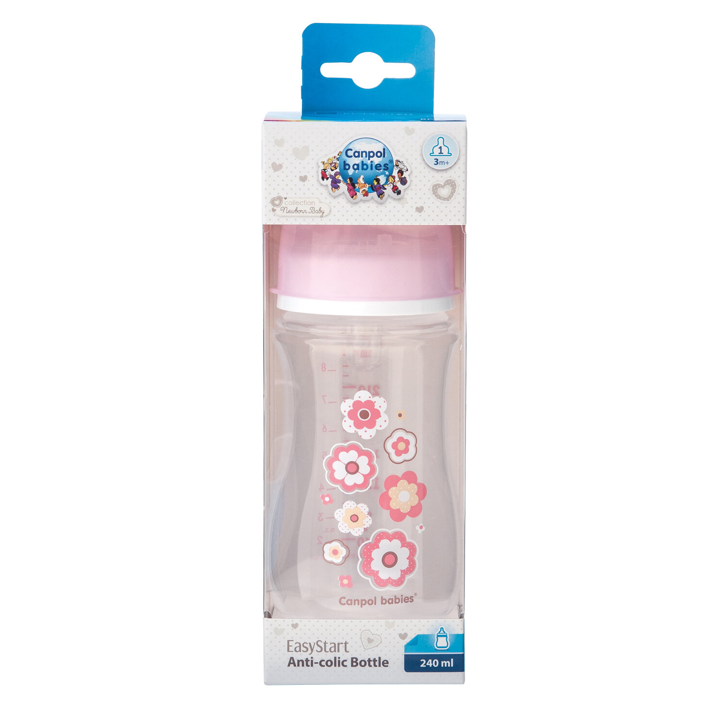 Canpol Babies Бутылочка антиколиковая с широким горлом EasyStart Newborn Baby 240 мл, с 3 месяцев, розовый