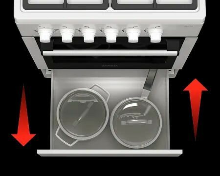 | Особенности конструкции | подсветка духовки / ящик для посуды |