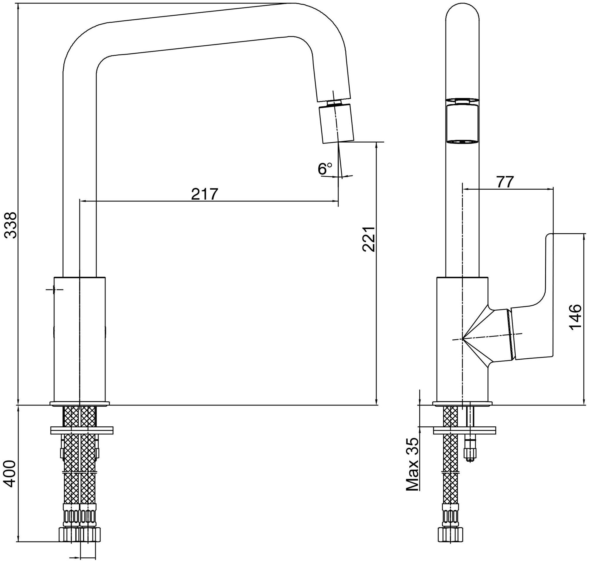 Смеситель E.C.A. Luna 102118044EX для кухонной мойки