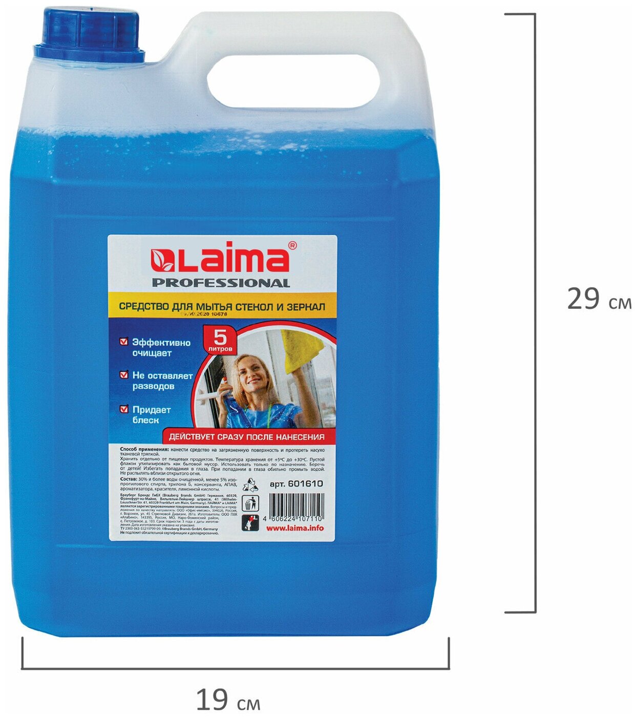 Средство для мытья стекол и зеркал 5 л, LAIMA PROFESSIONAL, 601610