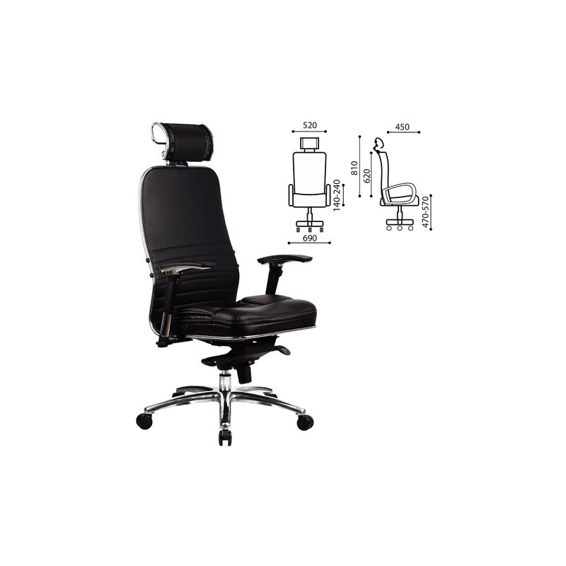 Кресло офисное Метта "SAMURAI" KL-3, 04, с подголовником, рецик, кожа, черное