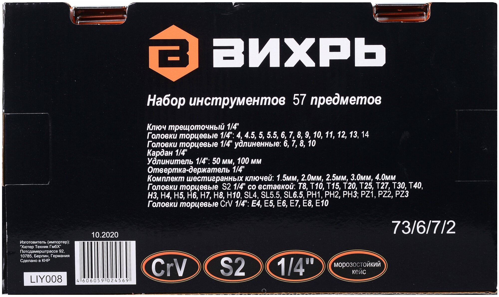 Набор инструментов, 1/4" , CrV, в кейсе 57 предм Вихрь интересное: