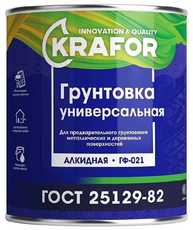 Грунтовка ГФ-021 по дереву и металлу Krafor , алкидная, 0,8 кг, серая