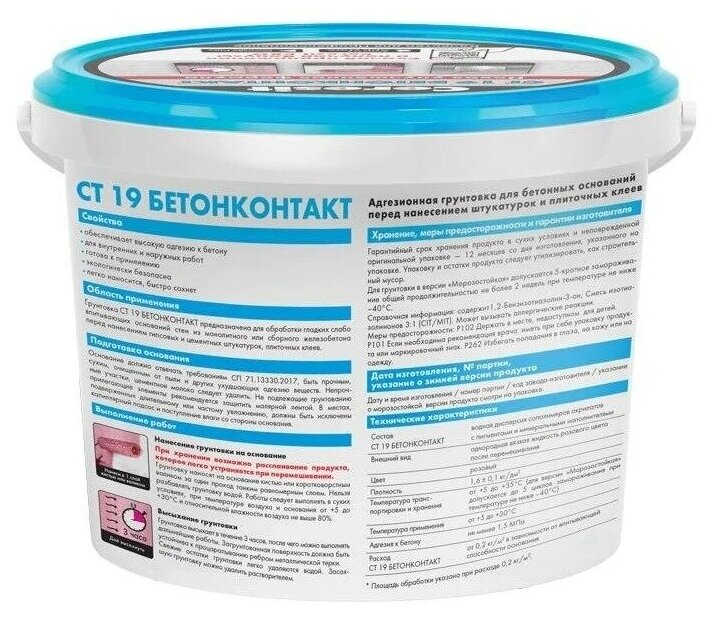 Ниже Вы можете прочитать отзывы на Грунтовка Ceresit CT 19 Бетонконтакт (зимняя формула), 3 кг, розовый, ознакомится с подробными характеристиками, посмотреть интересные обзоры и фотографии на Грунтовка Ceresit CT 19 Бетонконтакт (зимняя формула), 3 кг, розовый.
