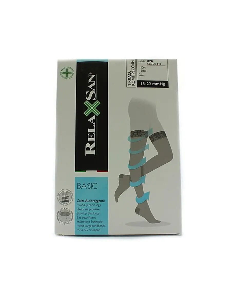 Чулки Relaxsan Basic Stay-Up 140 прозрачные на резинке 1-го класса компрессии, 870 (Женские, Закрытый, 2 размер, Черный, На резинке)