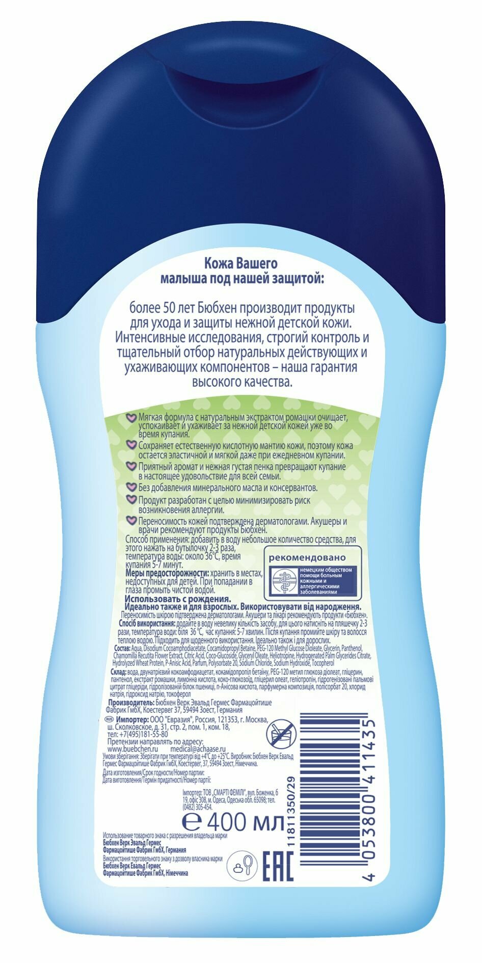 Средство для купания Bubchen, 400 мл - Евразия