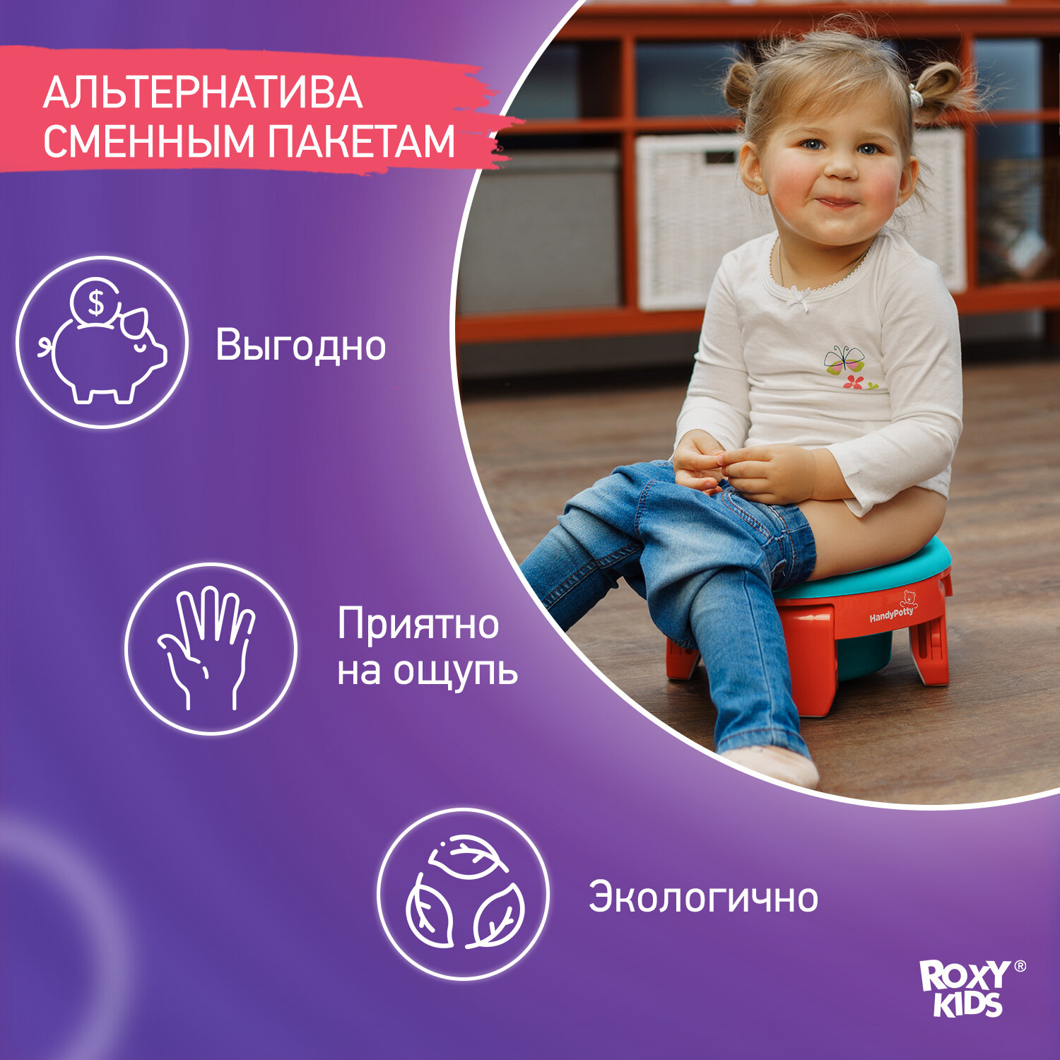 | Плюсы: | Мягкий материал, без дефектов. Очень хорошо подходит для дорожного горшка ROXY-KIDS. |