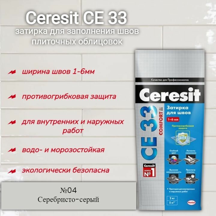 Купить Затирка для узких швов до 6 мм Ceresit СЕ 33 Comfort 04 серебристо-серая 2 кг