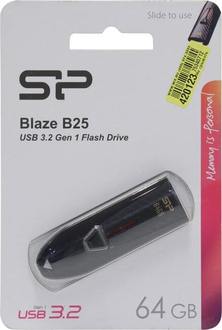 USB флешка SILICON POWER 64Gb Blaze B25 black USB 3.2 Gen 1 (USB 3.0)