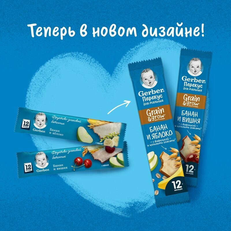 Фруктово-злаковый батончик Gerber с яблоком и бананом, с 12 мес. 25 г 20шт.