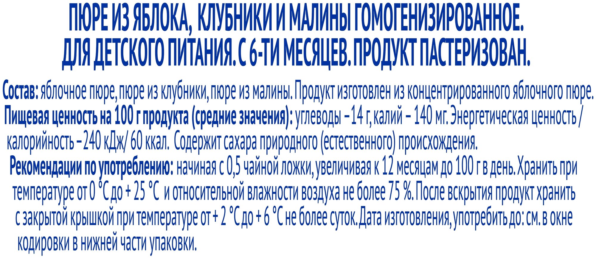 Пюре Агуша яблоко-клубника-малина (с 6 месяцев) 90 г/1шт