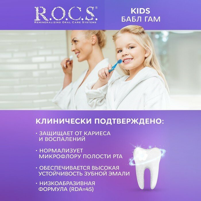 Зубная паста R.O.C.S. для детей, Бабл Гам, 45 гр (03-01-021)
