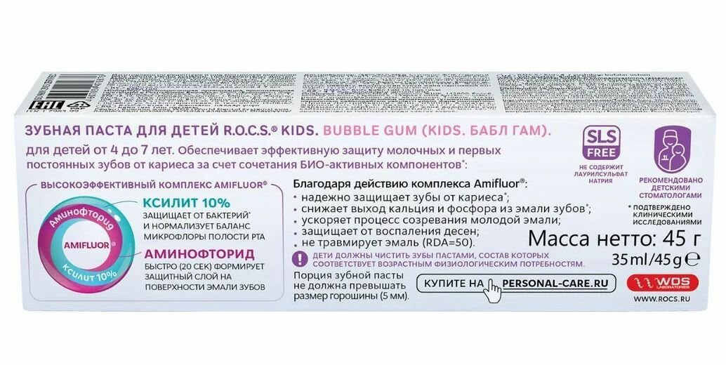 Зубная паста R.O.C.S. Kids Бабл гам 4-7 лет, 35 мл, 45 г