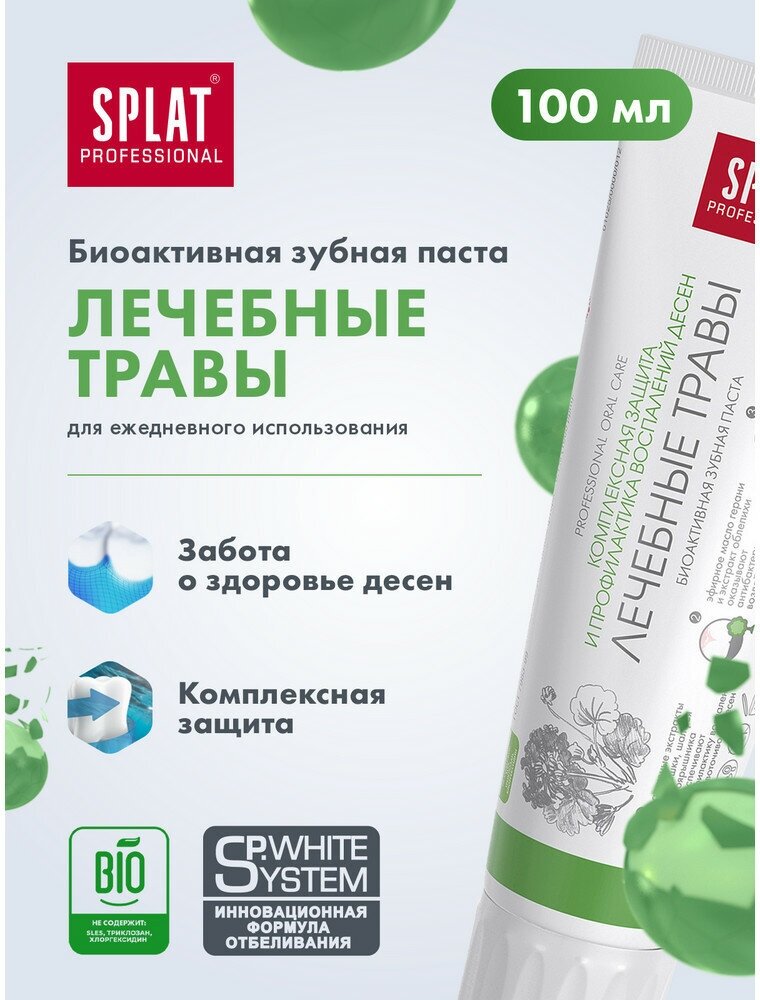 SPLAT Professional Лечебные травы Биоактивная зубная паста для комплексной защиты и профилактики воспалений десен 100 мл
