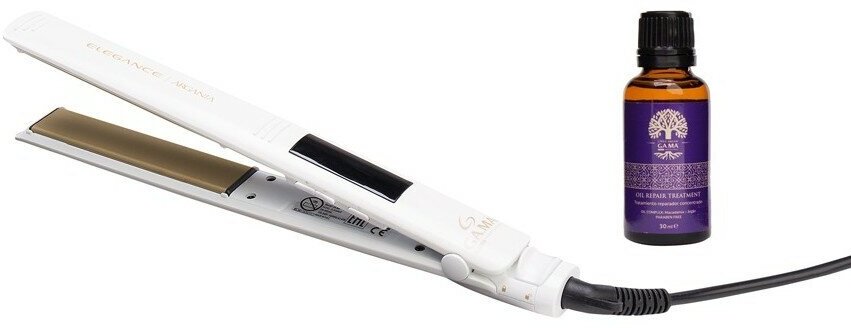 Купить ELEGANCE ARGAN Щипцы турмалин плоск.цифров. t 150-230°C, пласт25х120 мм, белые+аргановое масло 30мл