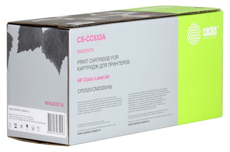 Картридж лазерный CACTUS (CS-CC533A) для HP ColorLaserJet CP2025/CM2320, пурпурный, ресурс 2800 стр