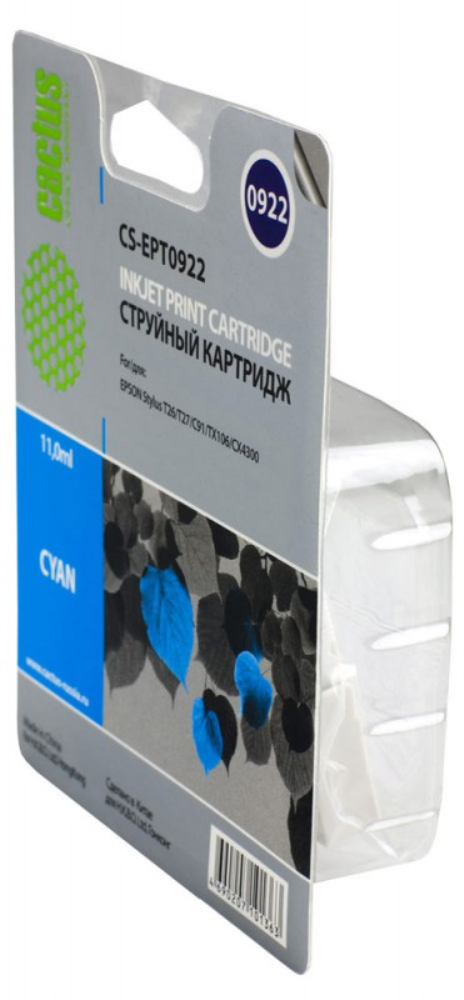 Картридж Cactus струйный T0922 голубой (6.6мл) для Epson Stylus C91/CX4300/T26/T27/TX106/TX109/TX117/TX119