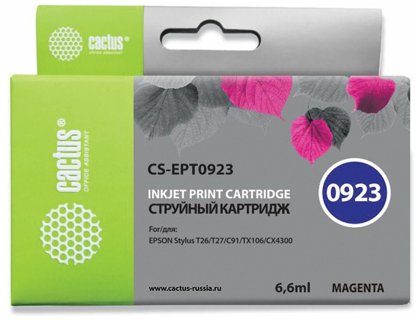 Купить Cartridge ink Cactus CS-EPT0923 magenta (6.6ml) for Epson Stylus C91/CX4300/T26/T27/TX106/TX109/TX11