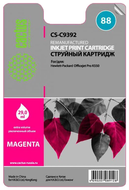 Cartridge ink Cactus CS-C9392 №88 magenta (29ml) for HP DJ Pro K550