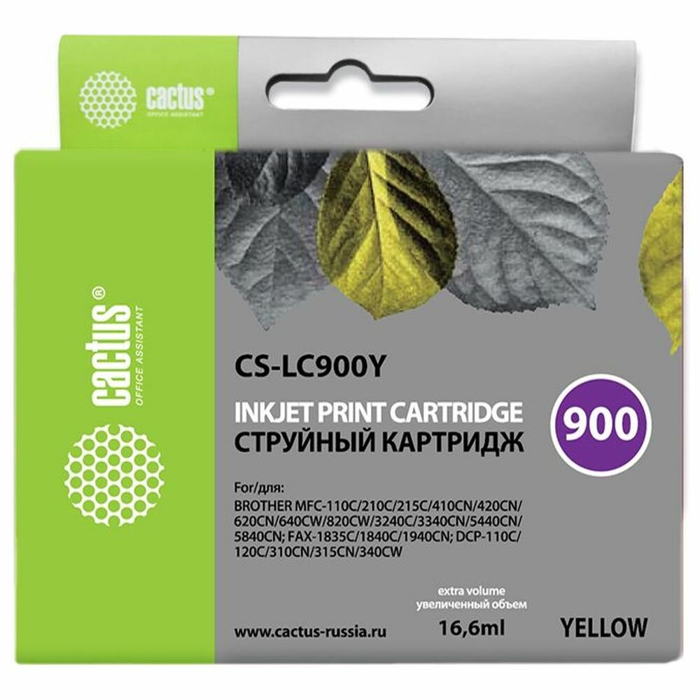 Картридж струйный Cactus CS-LC900Y желтый (16.6мл) для Brother DCP-110/115/120/MFC-210/215/FAX-1840