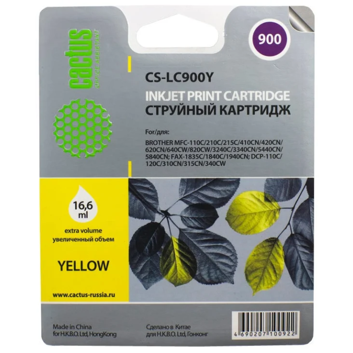 Cactus LC-900Y Картридж струйный CS-LC900Y желтый для Brother DCP-110 115 120 MFC-210 215 16,6ml