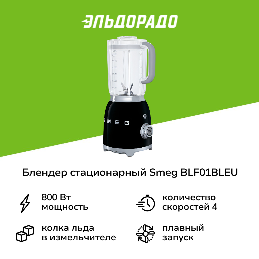 Стационарный блендер, объем кувшина 1,5л, Чёрный Smeg BLF01BLEU