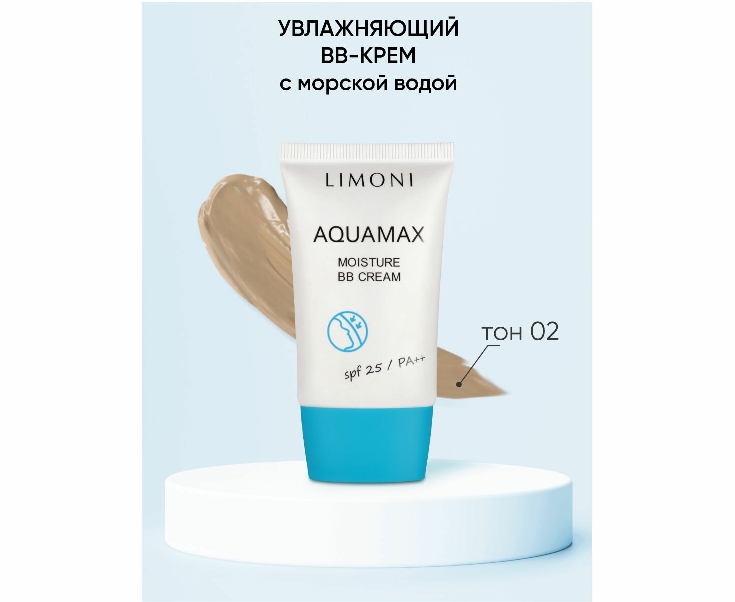 LIMONI Тональный BB крем для лица увлажняющий и выравнивающий тон кожи AQUAMAX SPF 25 PA++ тон №2, 15 мл