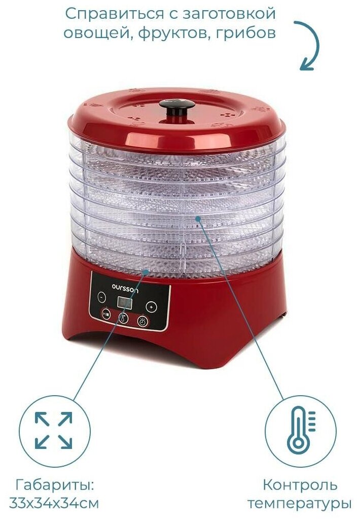 Сушилка для овощей и фруктов Oursson Dh3501d/rd (Красный) .