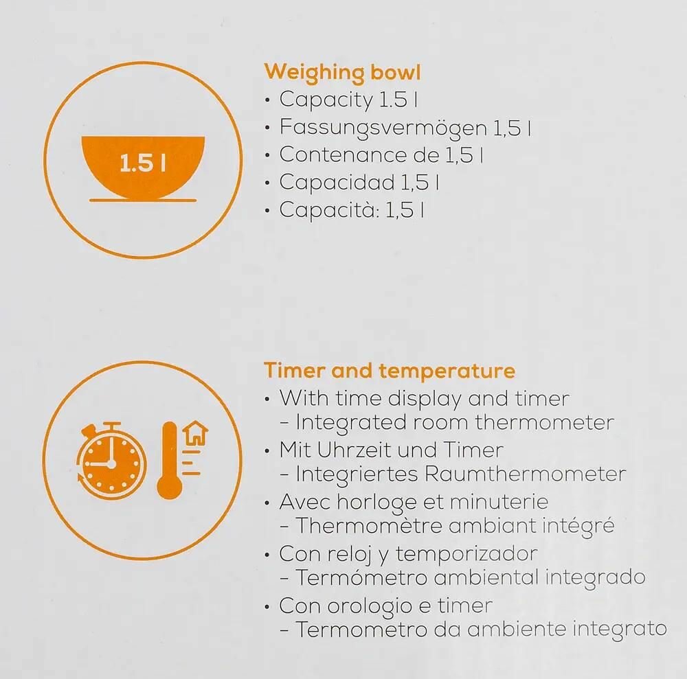 | Отзыв: | Отличные весы, подходят и для жидкости, с термометром и таймером. |