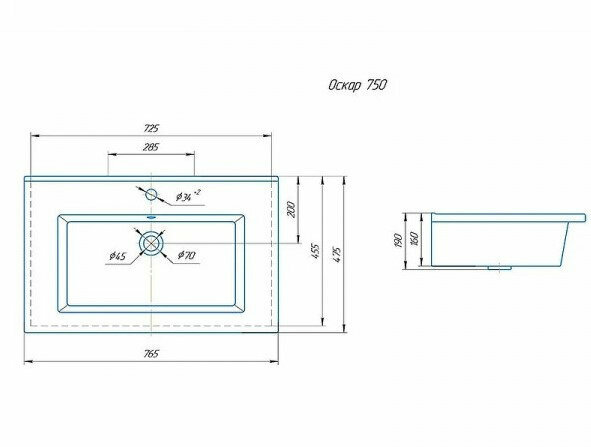 | Число размеченных отверстий под смеситель | отсутствуют |