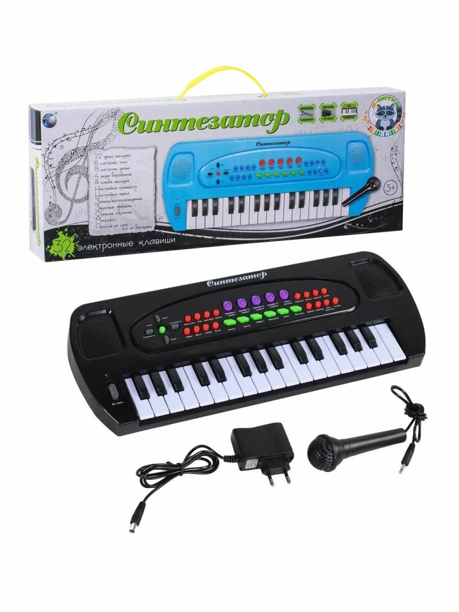 Синтезатор детский "Е-Нотка" 32 клавиши работает от сети и батареек, с микрофоном