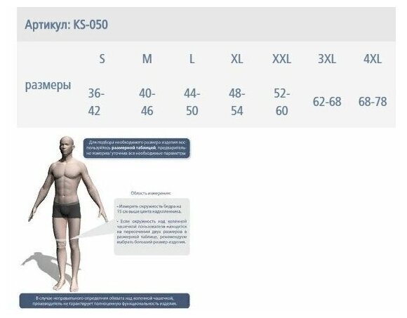 KS-050 Бандаж нижних конечностей на коленный сустав, размер 3XL, 62-68 см ПЗ