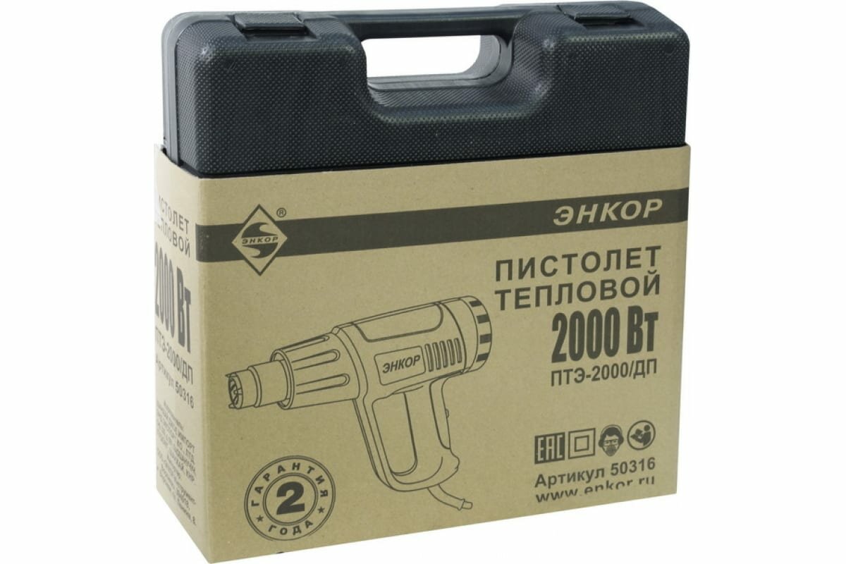 Фен строительный Энкор ПТЭ-2000/ДП кейс