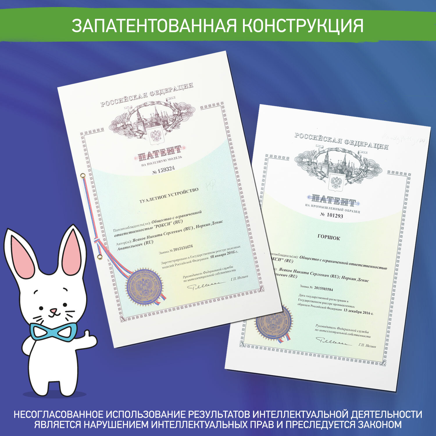| Плюсы: | Оптимальный размер позволяет брать с собой горшок в поездки, на пляж и в принципе в любые места, где он может понадобиться, хорошо использовать и как накладку на унитаз, в отпуске идеальный помощник |