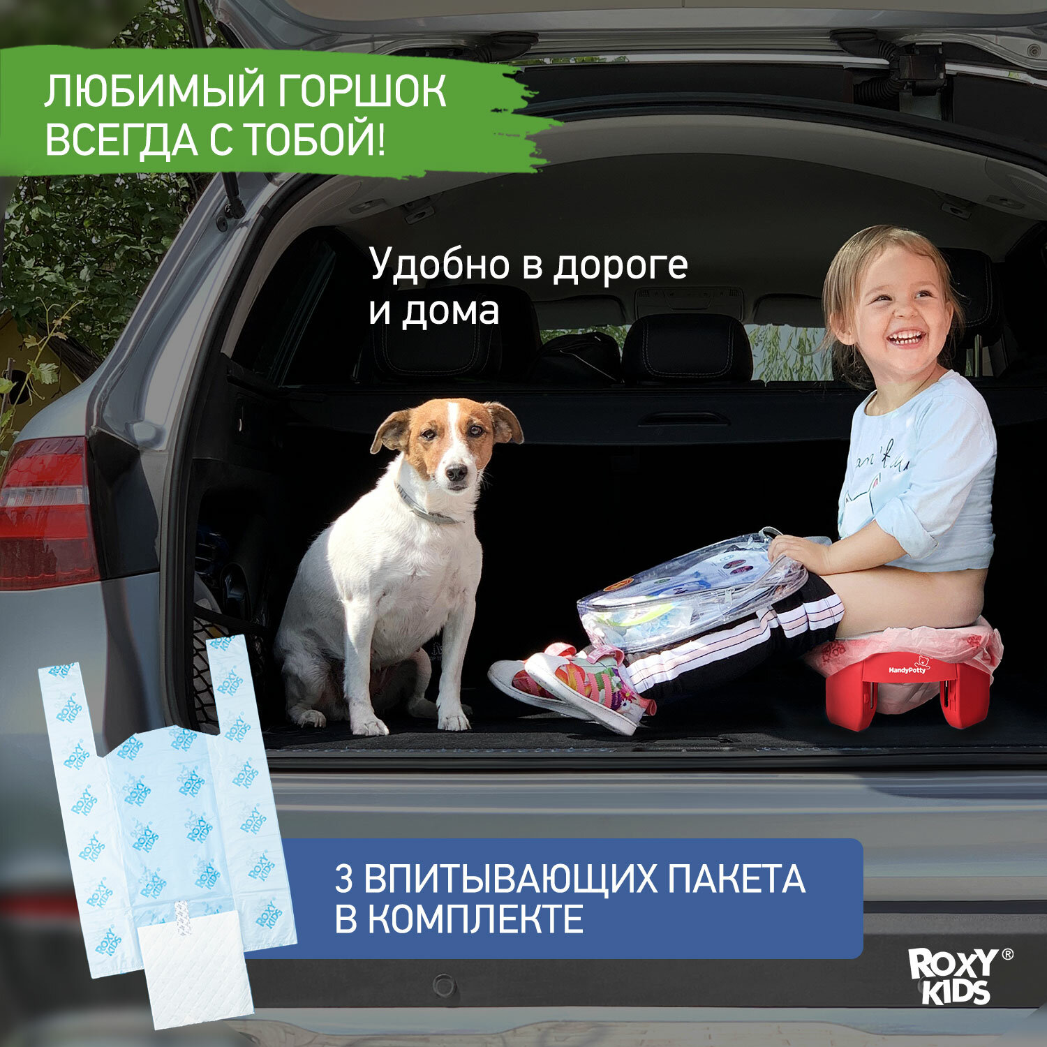 Купить Горшок складной дорожный и насадка на унитаз HandyPotty от ROXY-KIDS с тремя пакетами, цвет коралловый