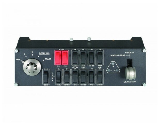 Игровой контроллер Logitech G Saitek Pro Flight Switch Panel блок переключателей для полетных симуляторов, черный, 13 клавиш, 1 тумблер, 1 рычаг, индикация, USB 2.0 кабель 1,8м