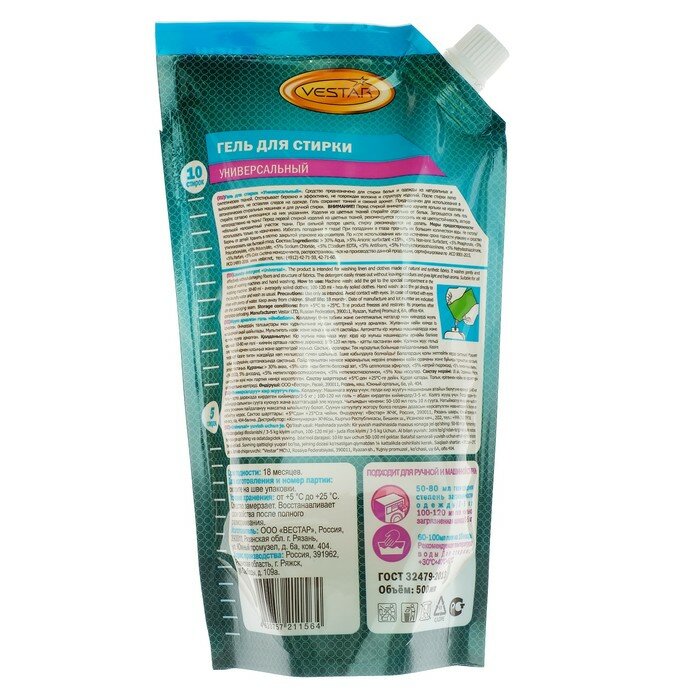Вестар Гель для стирки универсальный, дой-пак 500 мл
