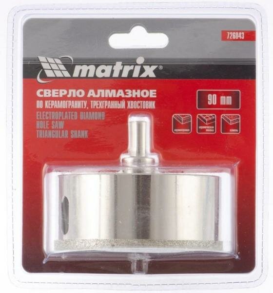 СохранитьMatrix Сверло алмазное по керамограниту, 90 х 67 мм, 3-гранный хвостовик// Matrix интересное: