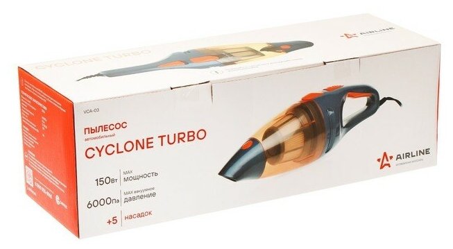 Пылесос автомобильный Airline CYCLONE TURBO VCA-03, 150 Вт, 0.5 л, 6 кПа, в сумке