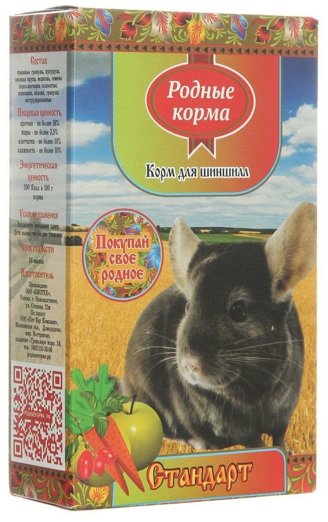 Корм родные корма Стандарт для шиншилл 400г 146.001 интересное: