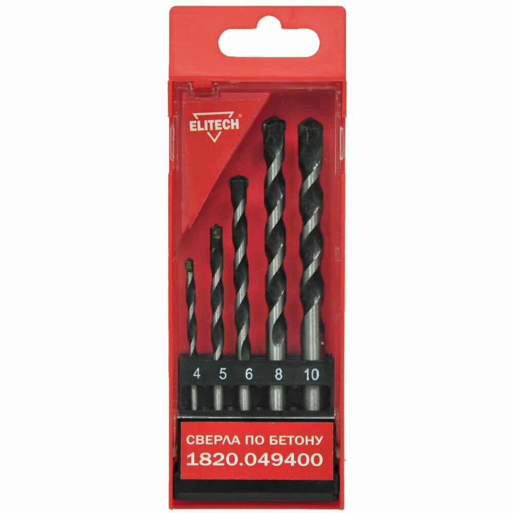 Набор сверл по бетону ELITECH 1820.049400 5шт 4/5/6/8/10мм