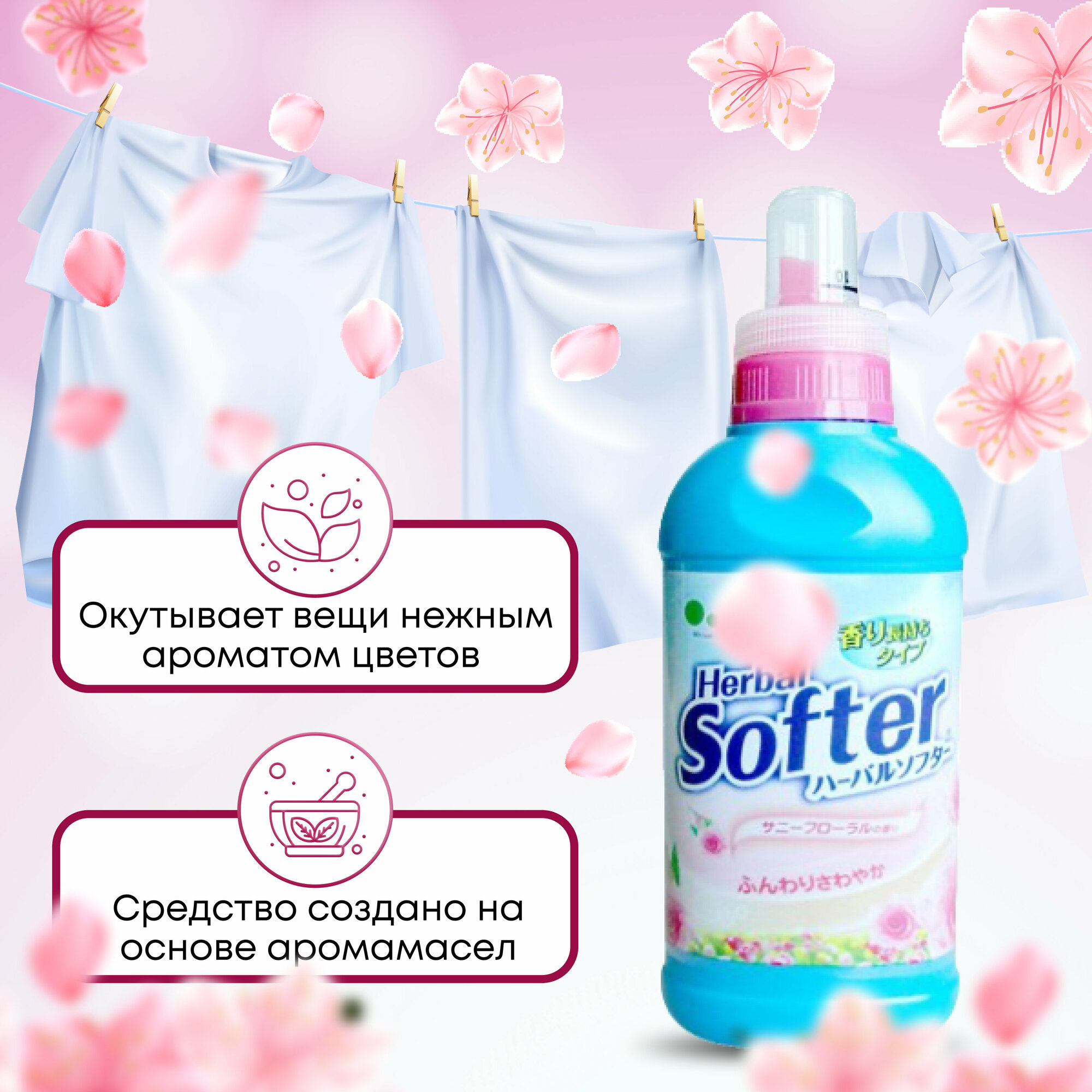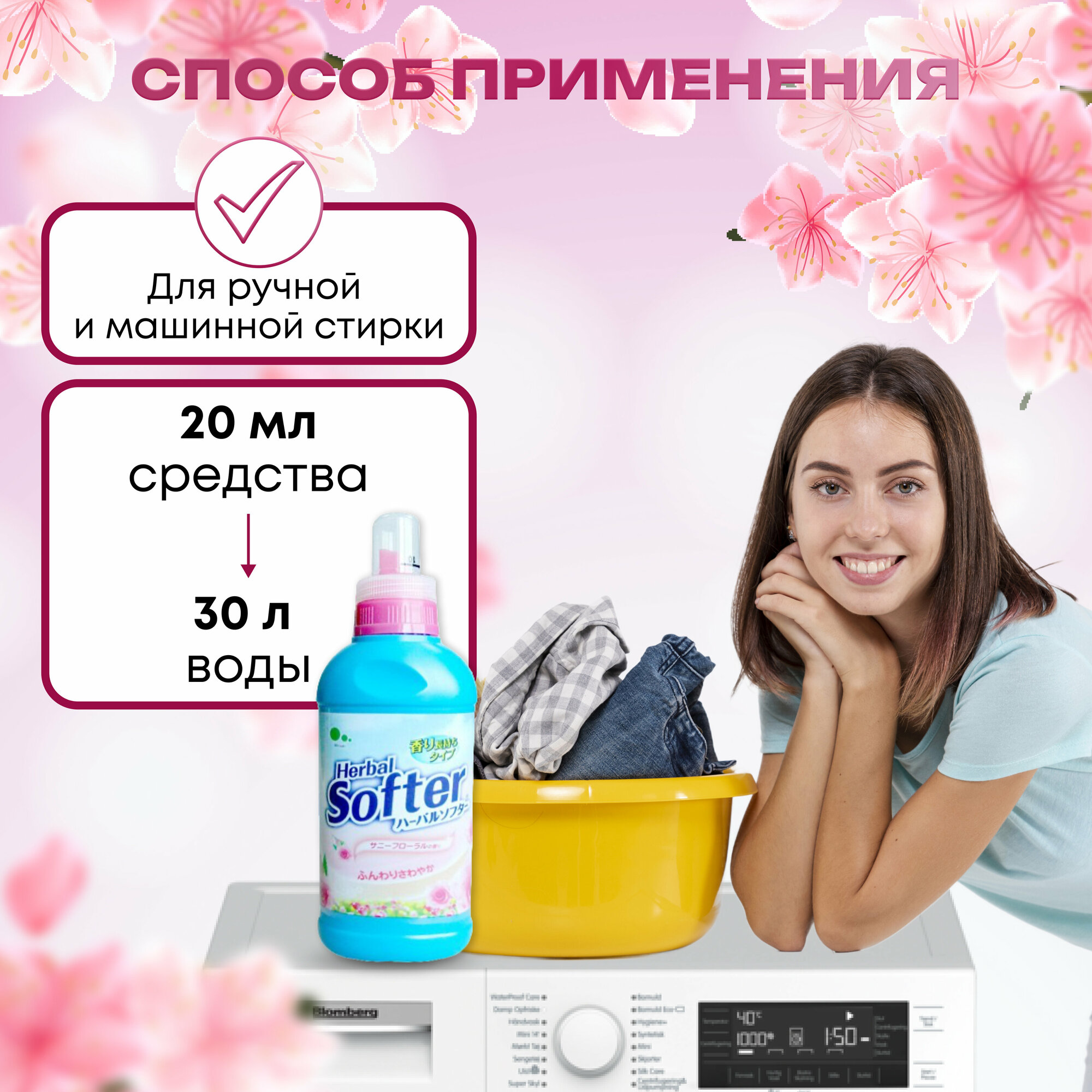 Кондиционер для белья с нежным ароматом цветов 450 мл, Mitsuei Herbal Softer, Япония / Антибактериальный гель ополаскиватель для одежды, вещей, детского белья парфюмированный / Жидкое средство для полоскания белья 450 мл / Бытовая химия для дома