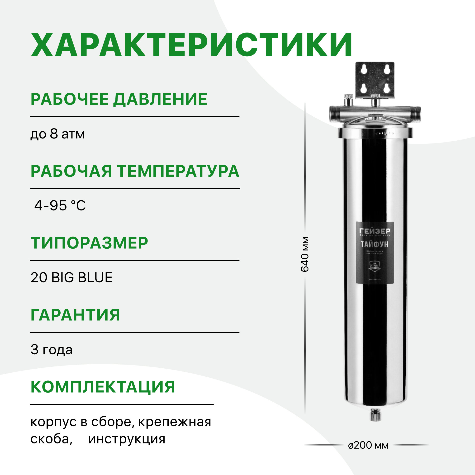 Купить Магистральная система Гейзер Фильтр магистральный Гейзер Тайфун 20 ВВ корпус для холодной и горячей воды
