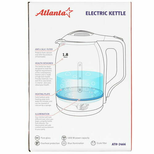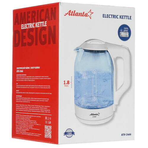 ATH-2466 (white) Чайник стеклянный электрический, Atlanta