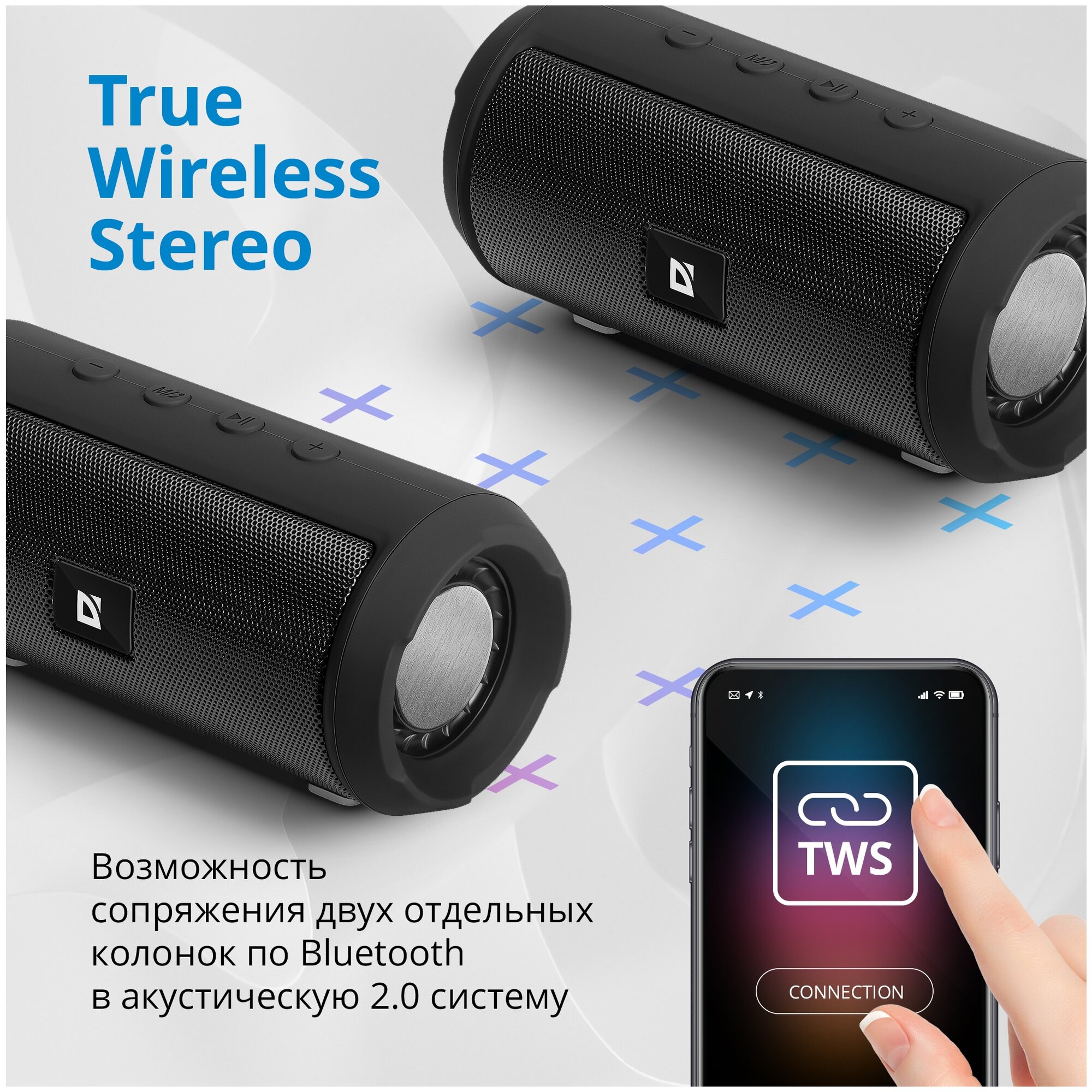 Колонка портативная Defender Enjoy S500, 2*5W, Bluetooth, FM, microSD, USB, 1200мА*ч, черный