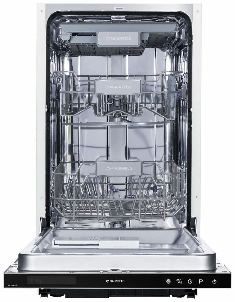 Посудомоечная машина MAUNFELD MLP-08IM встраиваемая, узкая 45 см, 10 комплектов, 8 программ, 3 корзины, луч на полу, турбосушка