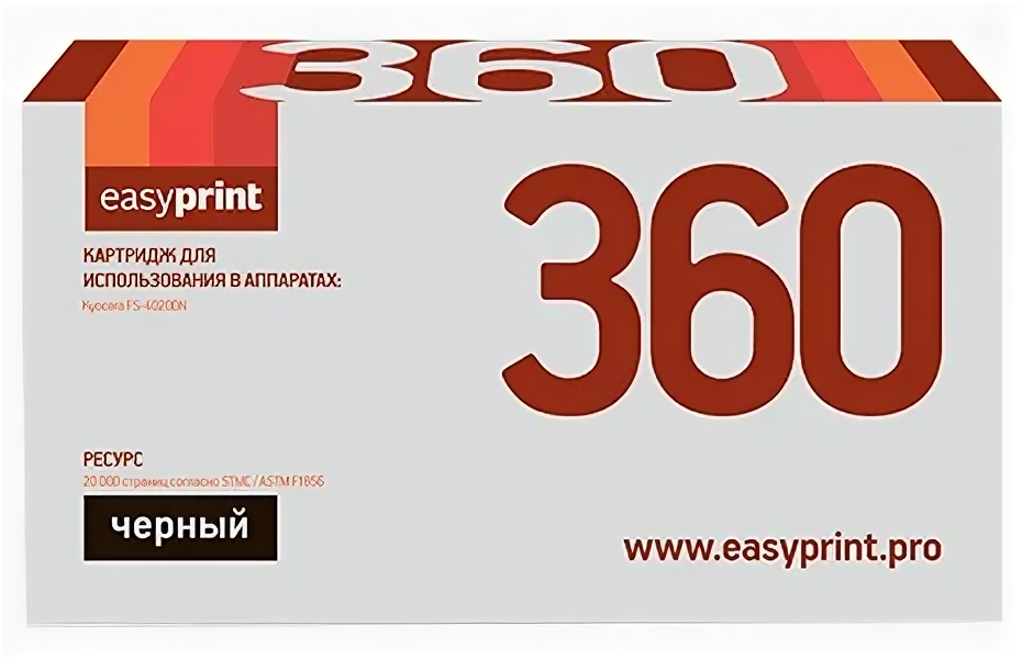Ниже Вы можете прочитать отзывы на Тонер-картридж EasyPrint LK-360 для Kyocera FS-4020DN 20000стр Черный, ознакомится с подробными характеристиками, посмотреть интересные обзоры и фотографии на Тонер-картридж EasyPrint LK-360 для Kyocera FS-4020DN 20000стр Черный.