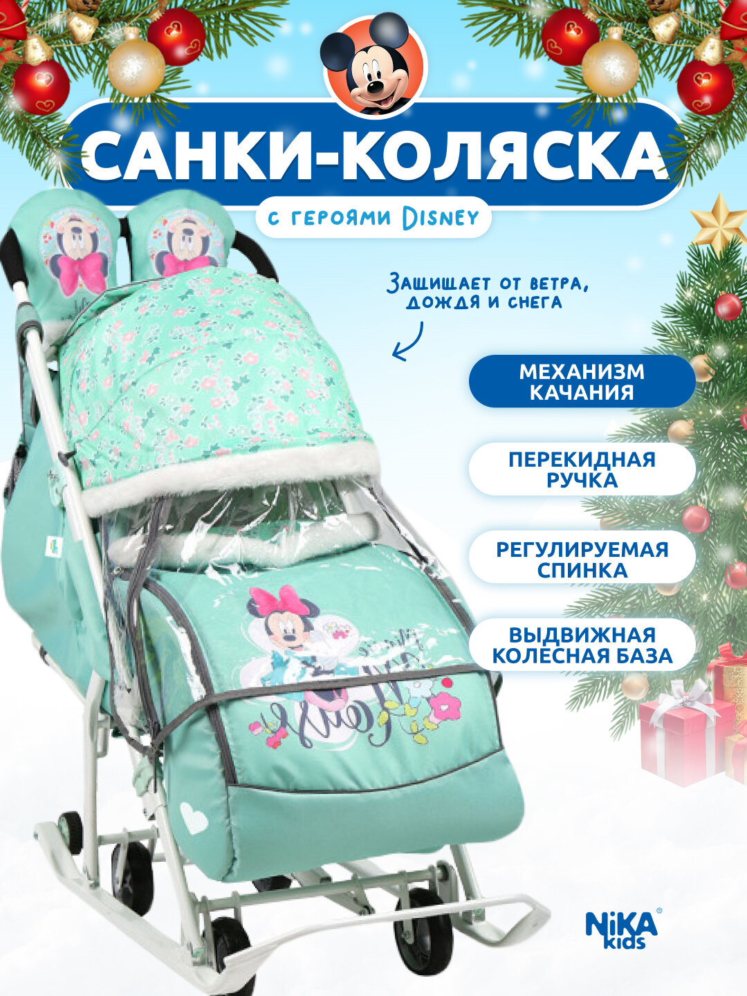 Санки-коляска NIKA Disney Baby 2 (с Минни Маус мятный)