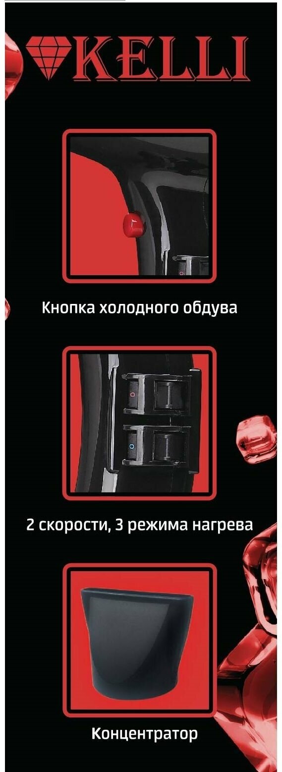 Фен для волос Kelli KL-1105 профессиональный, 2000 Вт интересное: